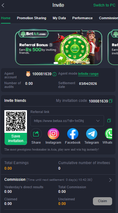 Referral programs on BetAA are highly lucrative. Players earn commissions when friends register and stay active.